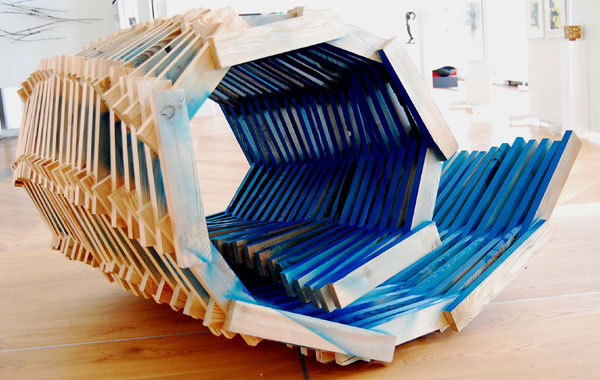 Die Jury kürte im Jahr 2007, "Blue Spirit," das Objekt aus sibirischen Lärchenholz von Oliver Köhl. Die Spannung seiner Installation entsteht dadurch, dass unser Auge das schnurgerade Ausgangsmaterial zu einer runden Form subsumieren will. Gerades wird rund und durch die eigenwillige farbliche Fassung wird der Betrachter neugierig gemacht. Wohin entwickelt sich die Rundung und wo beginnt und wo endet die Entwicklung. Der Bildhauer und freischaffende Künstler aus Kempten schuf mit "Blue Spirit" eine bewegliche Form, die organischen Charakter atmet.